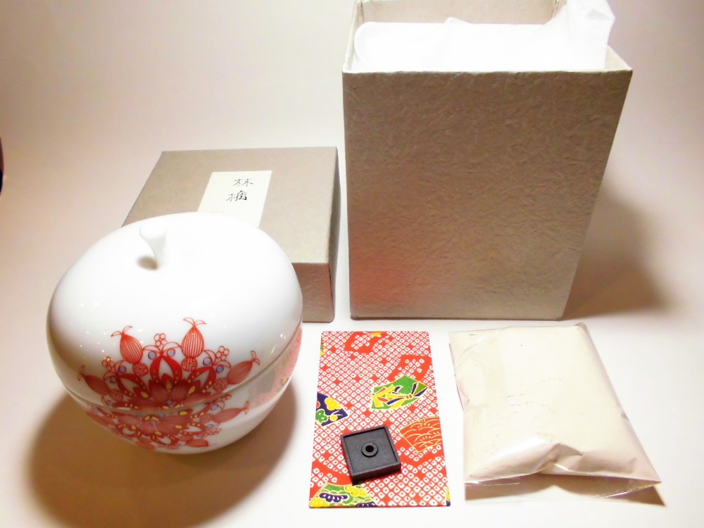 セット箱の商品イメージです。香箱とセラミックと説明書です。