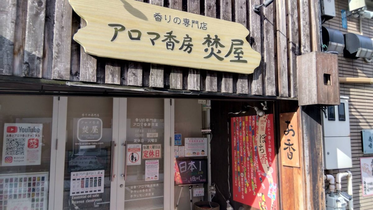 金沢のお香とアロマの香り専門店(石川県金沢市)・金沢観光地・金沢の観光スポット武家屋敷跡近く・人気でおすすめのお土産処-お香専門店のアロマ香房焚屋