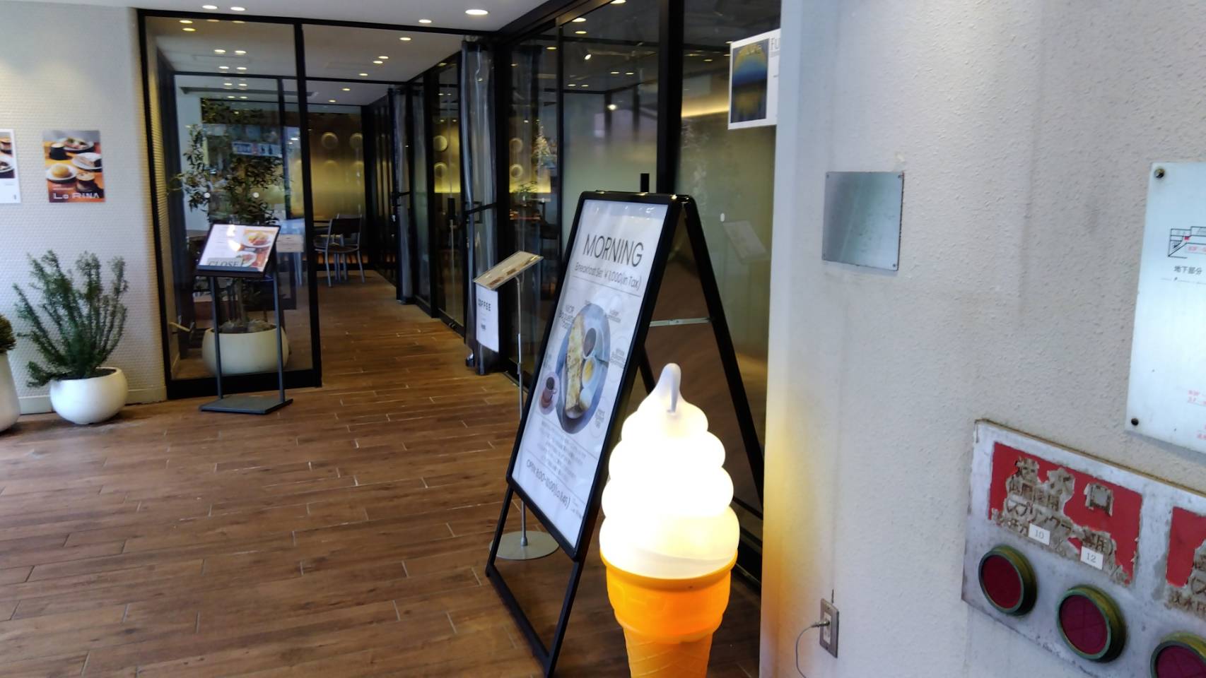 店頭で観葉植物がお出迎えしています。