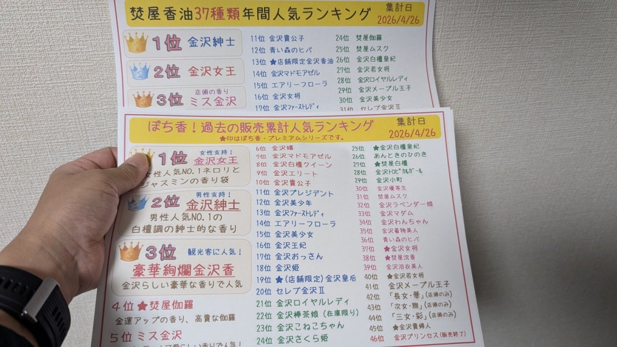 ★2026年04月26日<金沢のお香とアロマ香り専門店|アロマ香房焚屋。本日の日報>