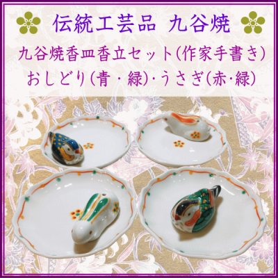 <新規登録> 九谷焼・手書き作家・香立香皿セット・おしどり、うさぎ -