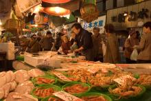 | 飲食店や生鮮食品を取り扱う店など142店舗が並ぶ。 平成20年いっぱい一部区域が再開発中ですが、 近江町市場はこれまで通り営業しています。 <営業時間> AM9:00〜PM5:30 <定休日> 店舗によって異なる <駐車場> 観光バス駐車場(076-234-3120) 近江町市場駐車場(076-232-2241) 近江町パーキング(076-263-7918) 所在地 〒920-0905 石川県金沢市上近江町50番地 アクセス方法 JR金沢駅 北鉄バス武蔵ケ辻下車徒歩すぐ お問い合わせ お問い合わせ先 近江町市場商店街振興組合 電話番号 076-231-1462 FAX 076-232-5502 メール info@ohmicho-ichiba.com ウェブサイト http://www.ohmicho-ichiba.com |