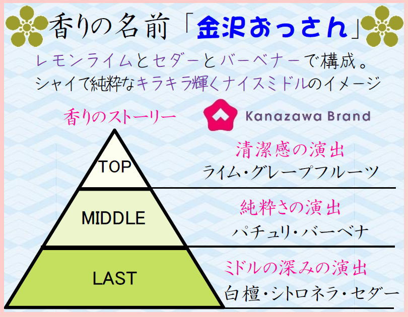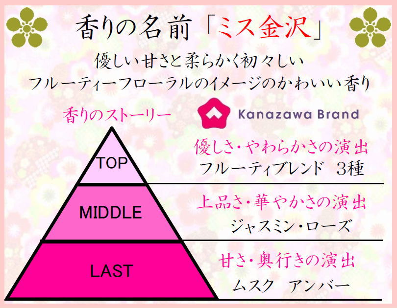 | 金沢マドモアゼル | ミドル女性 | 5種ブレンドのオリエンタルブーケ |