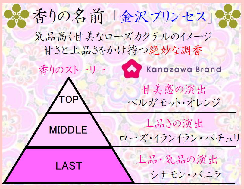 | 金沢さくら姫 | 全年齢対応 | 甘くかわいく優しいチェリーブーケの香り |