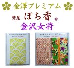 | <ぽち香のスペック詳細> ※注文時に色柄の指定はできません。どうしてもというときはお電話下さい。 ●製品名:「ぽち香」 1枚入 価格 440円(税込) 配るお土産に人気! パッケージサイズ:約 縦6.8cm×横5cm×高さ0.3cm 重量:2.6g 本体1個あたりのサイズ :約 縦5cm×横3cm×高さ0.2cm ●製品名:「ぽち香」 2枚入 価格 825円(税込) 1個当たり412円(税込) パッケージサイズ:約 縦6.5cm×横7cm×高さ0.3cm 重量:4.5g 本体1個あたりのサイズ :約 縦5cm×横3cm×高さ0.2cm ●製品名:「ぽち香」 3枚入 価格 1,155円(税込) 1個当たり385円(税込) パッケージサイズ:約 縦10cm×横7cm×高さ0.6cm 重量:7.5g 本体1個あたりのサイズ :約 縦5cm×横3cm×高さ0.2cm ●製品名:「ぽち香」 大1枚入 価格 880円(税込) 香りの強さ2倍! 財布名刺入れにピッタリサイズ! ビジネスシーンで香りの”効果”を実感したい方向け パッケージサイズ:約 縦9cm×横7cm×高さ0.6cm 重量:5.5g 本体1個あたりのサイズ :約 縦7.5cm×横6cm×高さ0.2cm |