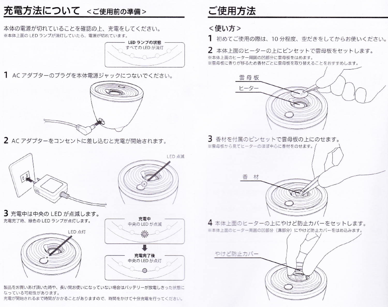 使用時間 :ACアダプタ、内臓バッテリ共に30分で自動停止