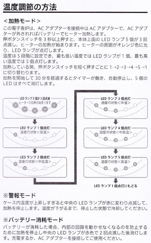 香材の異なる様々な香りが広がるように温度調節に対応できます。