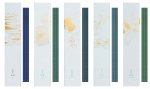 ・ それぞれの色にゆかりのある植物などが、金箔の線画でデザインされています。