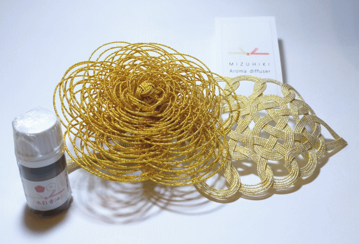 金沢の伝統工芸「水引」と焚屋の香りのコラボ商品が生まれました。“香る”伝統工芸・「水引アロマディフューザー」。