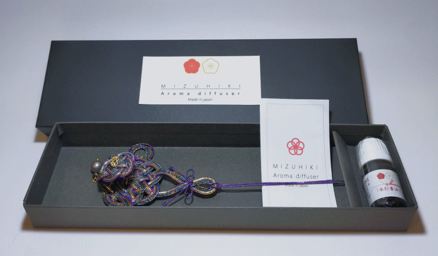 こちらは掛けるタイプの水引です。専用箱と水引の説明とオイルがセットです。