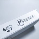 サトウキビ(非木材資源)からつくられた、バガスパルプ配合の環境対応紙を使用した、環境に配慮した箱。