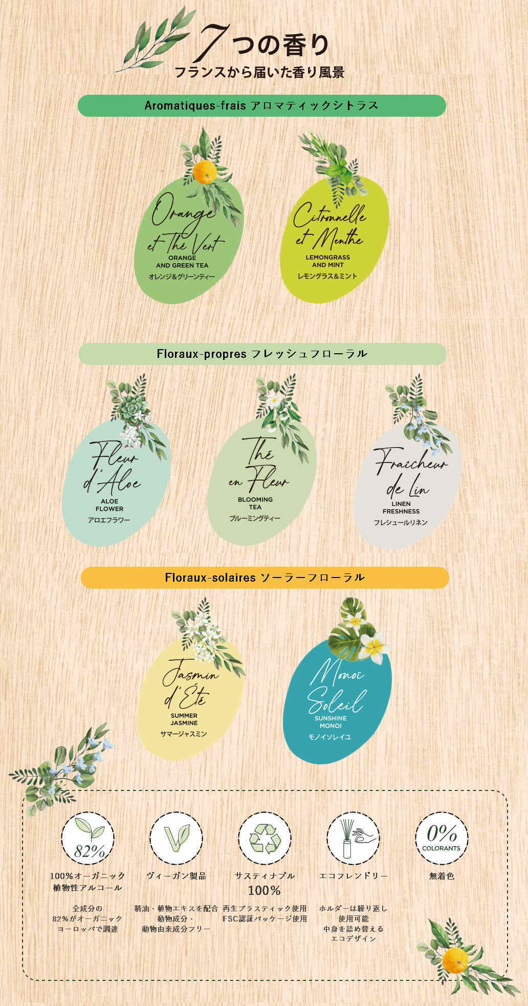 南フランスのアトリエで作られたウッドスティック(リーフ)は、環境に配慮し、適切に管理されたサスティナブルな森林から、調達されたものです。