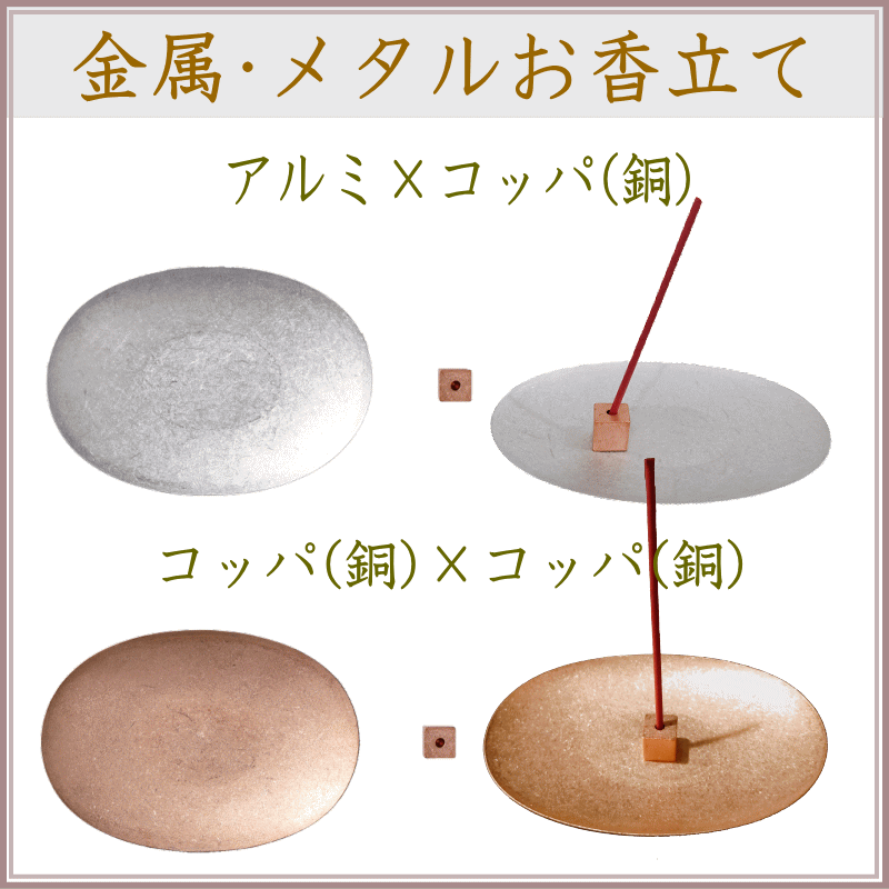 ●アルミとコッパー(銅)のお香立て、香皿セットです。