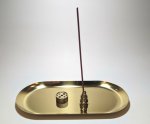 ●<真鍮・香立と金属香皿3点セット>金色・楕円型