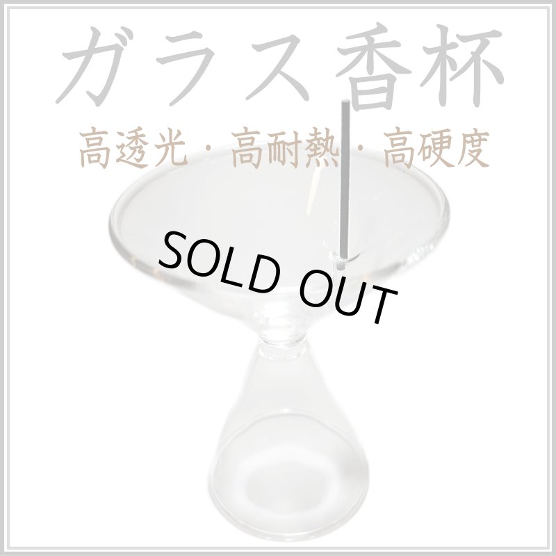 ガラス香杯です。砂時計の感覚をベースに、湾曲した透明な器の下に焚き終えた香灰が集まります。