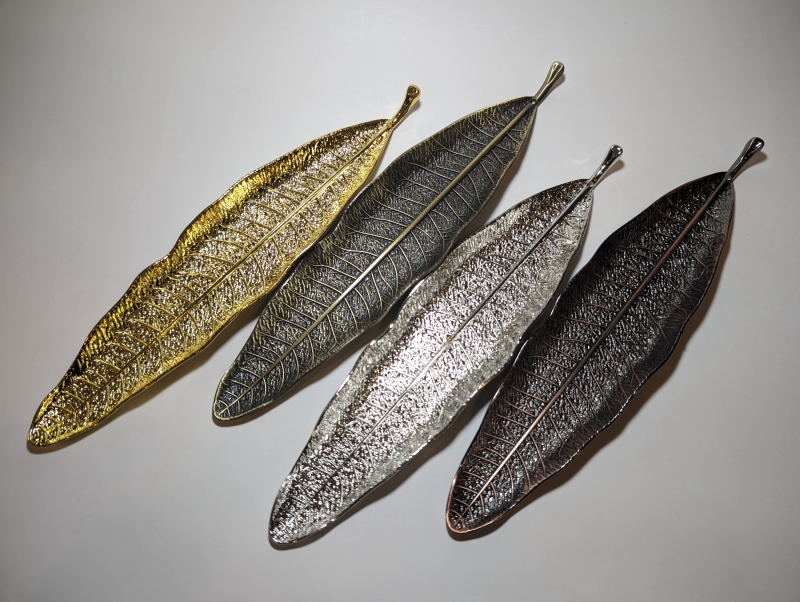 ●焚屋感想 長めの香皿です。なかなか長いタイプの香皿はないのですが、こちらは14cmサイズのお香なら楽々焚けます。カラーは4色あります。また素材も金属の為、安心してお香が焚けます。