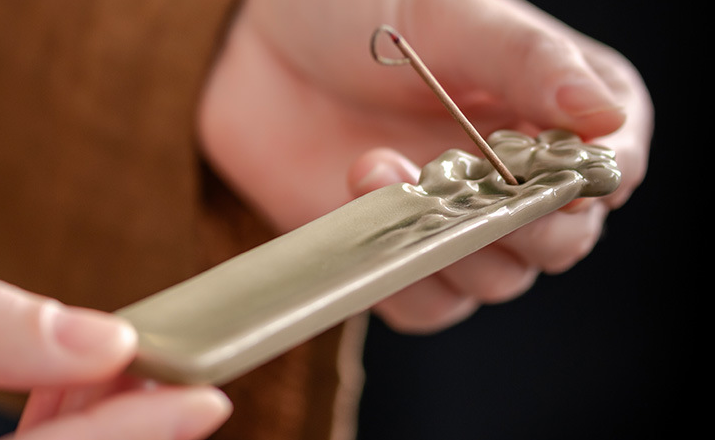 ●シンプル・エレガント・素朴でコンパクトな香皿香立。独創的な手作りのお線香職人により一枚一枚丁寧に作られており、素朴な味わいのお香立です。匠の技により、1300℃の高温で焼成された陶器香皿です。
