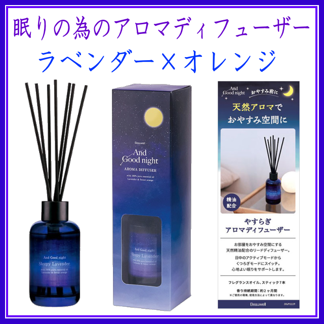 ・安眠に適したラベンダーとオレンジの天然精油のディフューザーです。容量も100mlと多いので2カ月は持つと思います。天然の爽やかな香りで安眠したい方に是非お勧めします。