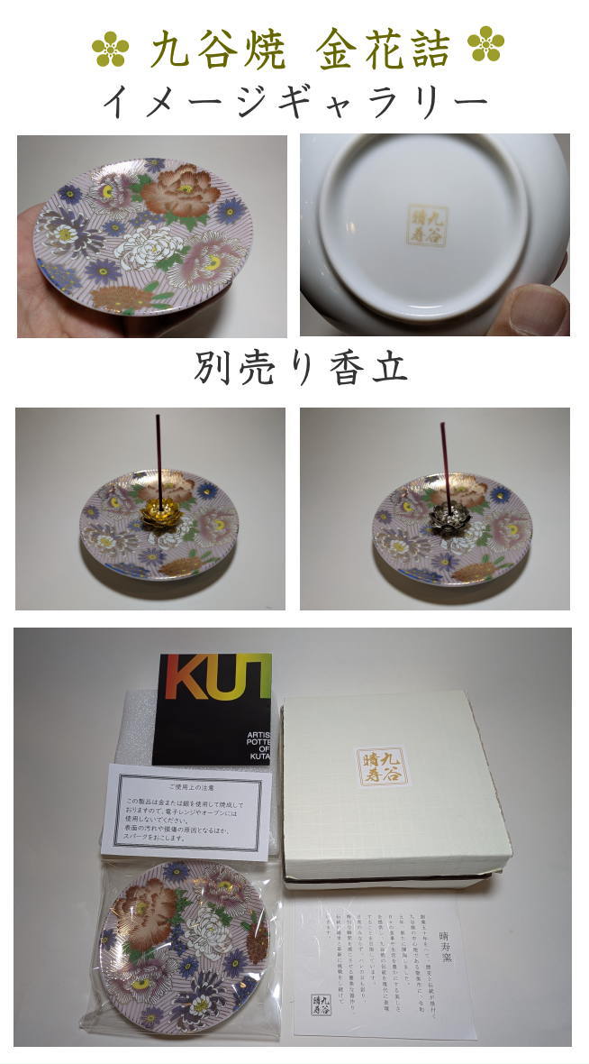 金属製の蓮のお香立てです。伝統工芸品九谷焼をより華やかに演出いたします。