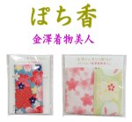 | <ぽち香のスペック詳細> ※注文時に色柄の指定はできません。どうしてもというときはお電話下さい。 ●製品名:「ぽち香」 1枚入 価格 330円(税込) 配るお土産に人気! パッケージサイズ:約 縦6.8cm×横5cm×高さ0.3cm 重量:2.6g 本体1個あたりのサイズ :約 縦5cm×横3cm×高さ0.2cm ●製品名:「ぽち香」 2枚入 価格 605円(税込) 1個当たり302円(税込) パッケージサイズ:約 縦6.5cm×横7cm×高さ0.3cm 重量:4.5g 本体1個あたりのサイズ :約 縦5cm×横3cm×高さ0.2cm ●製品名:「ぽち香」 3枚入 価格 825円(税込) 1個当たり275円(税込) パッケージサイズ:約 縦10cm×横7cm×高さ0.6cm 重量:7.5g 本体1個あたりのサイズ :約 縦5cm×横3cm×高さ0.2cm ●製品名:「ぽち香」 大1枚入 価格 660円(税込) 香りの強さ2倍! 財布名刺入れにピッタリサイズ! ビジネスシーンで香りの”効果”を実感したい方向け パッケージサイズ:約 縦9cm×横7cm×高さ0.6cm 重量:5.5g 本体1個あたりのサイズ :約 縦7.5cm×横6cm×高さ0.2cm |